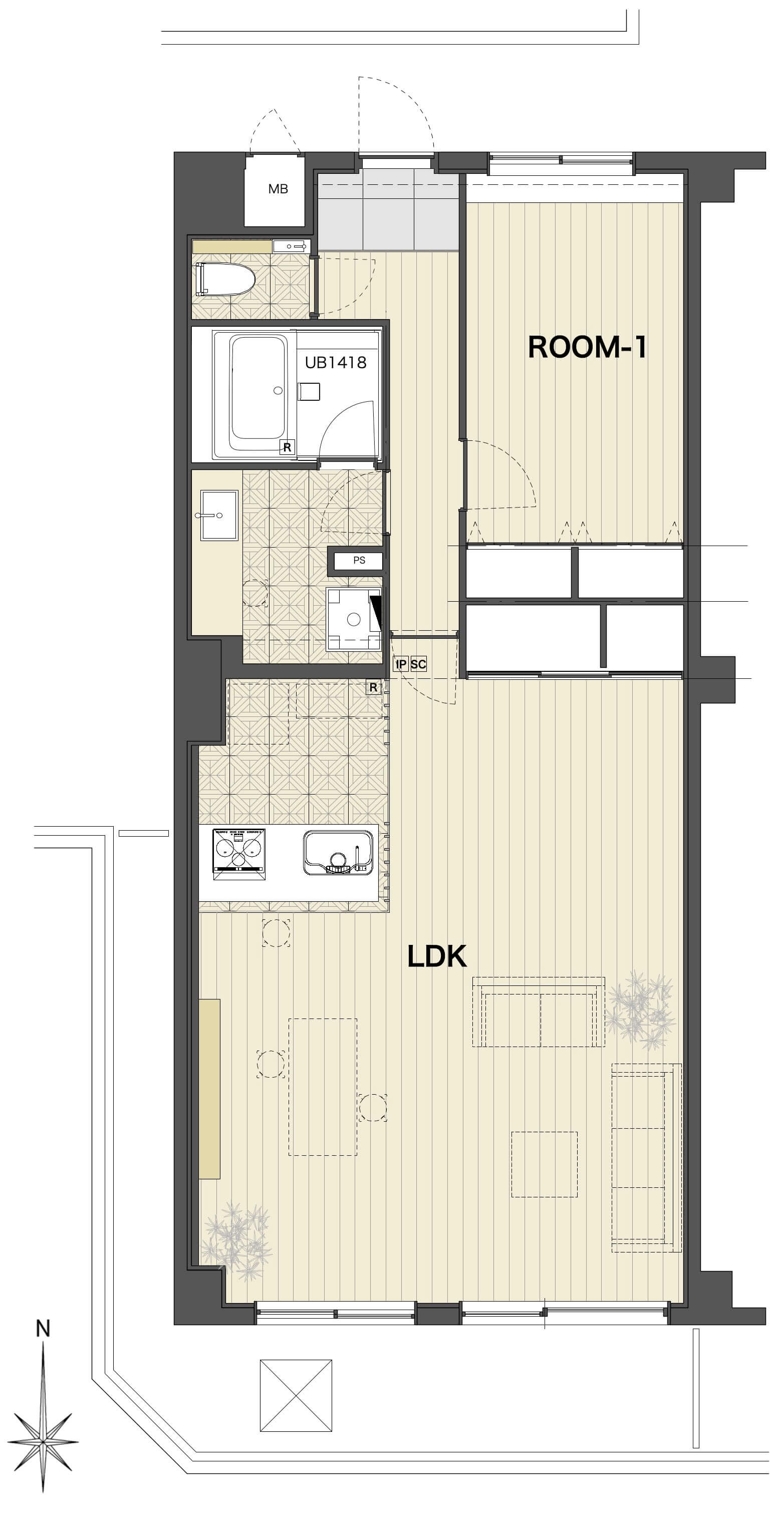 間取:1LDK (LDK 26畳・洋室 7畳)